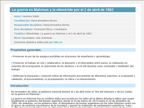 Guerra de Malvinas - La guerra de Malvinas y la conmemoracin del de abril de 1982. La guerra de Malvinas - Recursos mar. Malvinas para todos: revista de divulgacin masiva (Programa Educacin y Memoria).